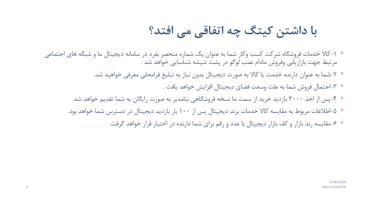 گرچه عده ای درگیر تحریم هستند و مشکلات اقتصادی دارند اما با عضویت در شبکه کیتگ مشکل اطلاع وشفافیت بازار با کمک شما